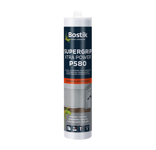 | Bostik P580 SUPERGRIP XTRA POWER çok çeşitli uygulamalar için çözücü içermeyen, D4 su geçirmez, son derecede güçlü ve dayanaklı bir poliüreten yapıştırıcıdır. |